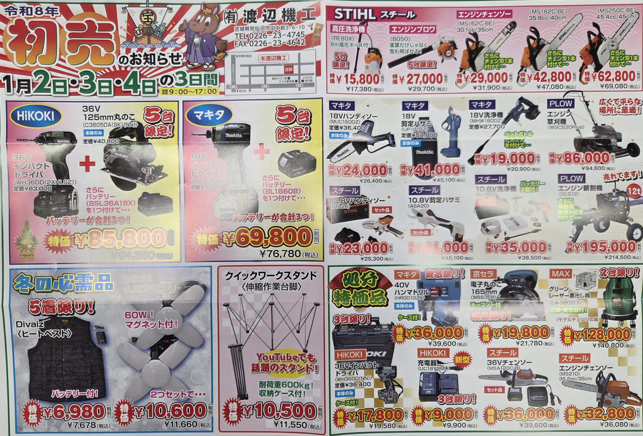初売りは1月2日・3日・4日の3日間(9:00~17:00)で初売を行いますので、皆様のご来店心よりお待ちしております。